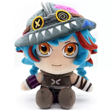 What did Jinx just throw our way? Better catch it! Wait... WAIT NO! Standing at 9 inches tall with red and black eyes that have angry scrawled lines across them and a trio of nails sticking out from the top of their head, chunks are missing from their ears as their head is split in the middle by menacing bared teeth. With a long yellow crank sticking out from the back of their brown body, matching spiked symbols are strapped to each hand at the ready to clang their way to a catastrophic explosion! This plush is packed to the seams with 100% PP cotton and is made of the softest minky materials with accents of felt, absolutely perfect for cuddling or exploding with!